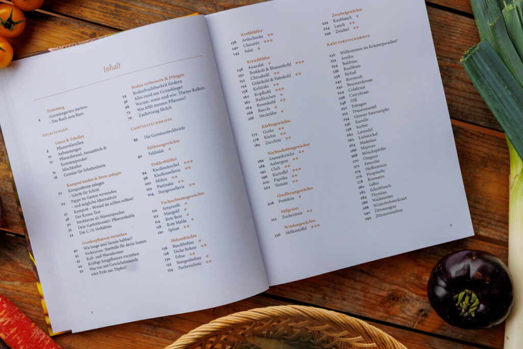 Das eBook ist im Kurs inklusive und Dein roter Faden durch den Gemüsedschungel: Auf knapp 300 Seiten findest Du hilfreiche Übersichtstabellen und Checklisten, sowie detaillierte Anbauanleitungen für insgesamt 75 Gemüse & Kräuter – von der Artischocke bis zum Zuckermais.