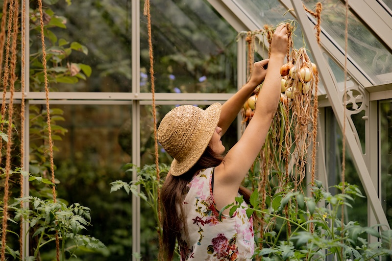 Danach sammelst du deine Zwiebeln ein und bringst sie an einen trockenen Ort – zum Beispiel ins Gewächshaus oder die Garage.
